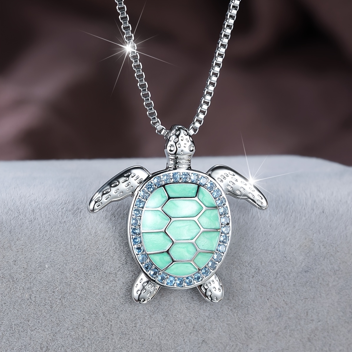 1pc ANGOL Women's Elegant Turtle Pendant Necklace - with Turquoise-like Green Gemstone-like center, Delicate Chain for Birthday, Anniversary, Everyday Jewelry Gift - Year-Round Wearable Necklace for Women, Turtle Jewelry, Spa
