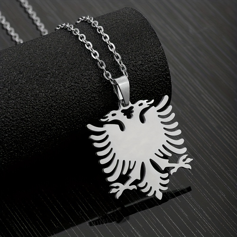 1pc Men's And Women's Party Fashion Trendy Gift, Titanium Steel Albania Eagle Pendant Necklace