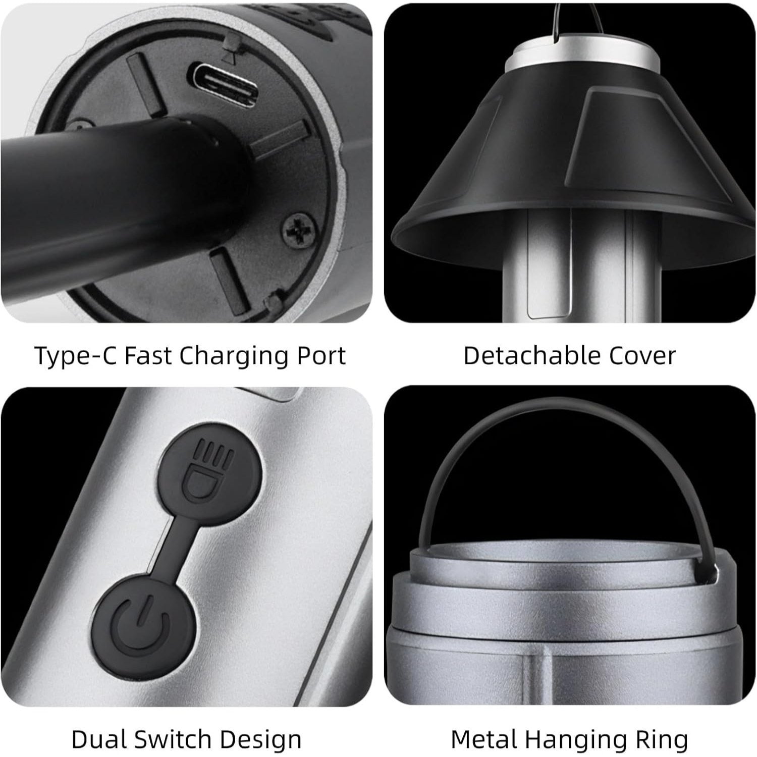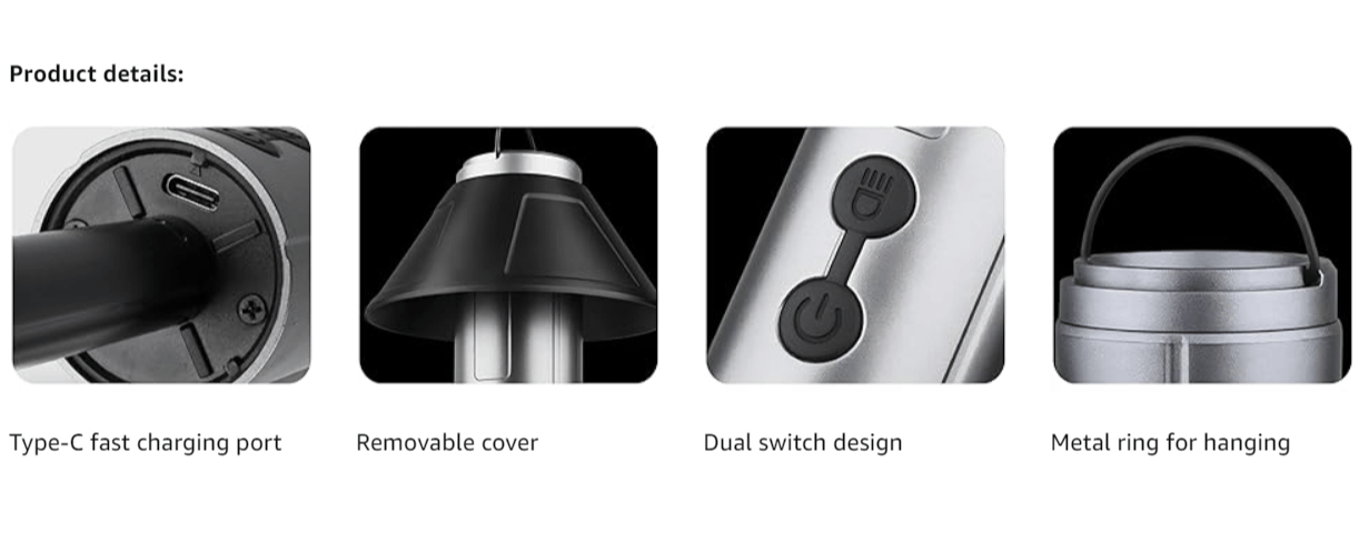 2-in-1 Retractable LED Camping Light, 3000 mAh Rechargeable Retractable Camping Light with USB Rechargeable Battery, 5 Lighting Modes, LED Flashlight, 270° Adjustable, 4 Height Adjustments, Hanging and Standing, Hidden Hook