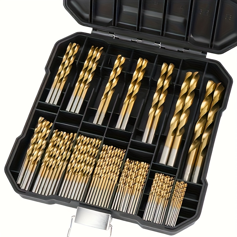 50pcs Titanium-Coated High-Speed Steel Drill Bit Set, 135° Pointed Tip, Suitable for DIY Crafts, Woodworking, Engraving, and Jewelry Making - Sizes from 1/25" to 1/8", Metal Cylindrical
