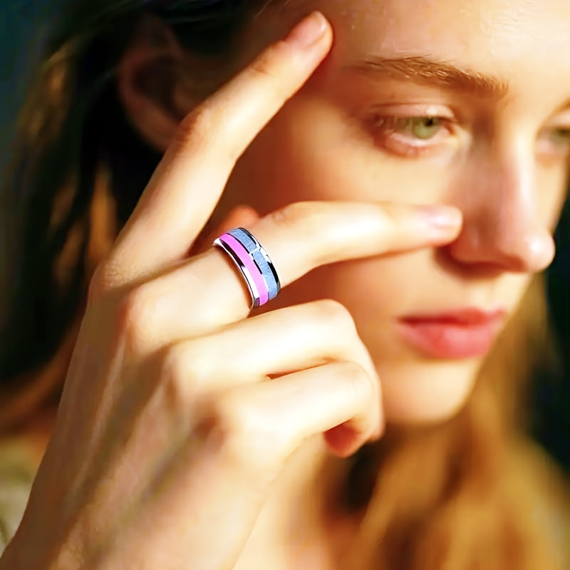 8mm Stainless Steel Ring with Pink Cherry Blossom Inlay - Double Design, Comfortable Fit for Daily Wear & Special Occasions, Perfect Gift for Birthdays, Christmas, Valentine'S Day, Festive Gift Item | Elegant Ring Design | Du