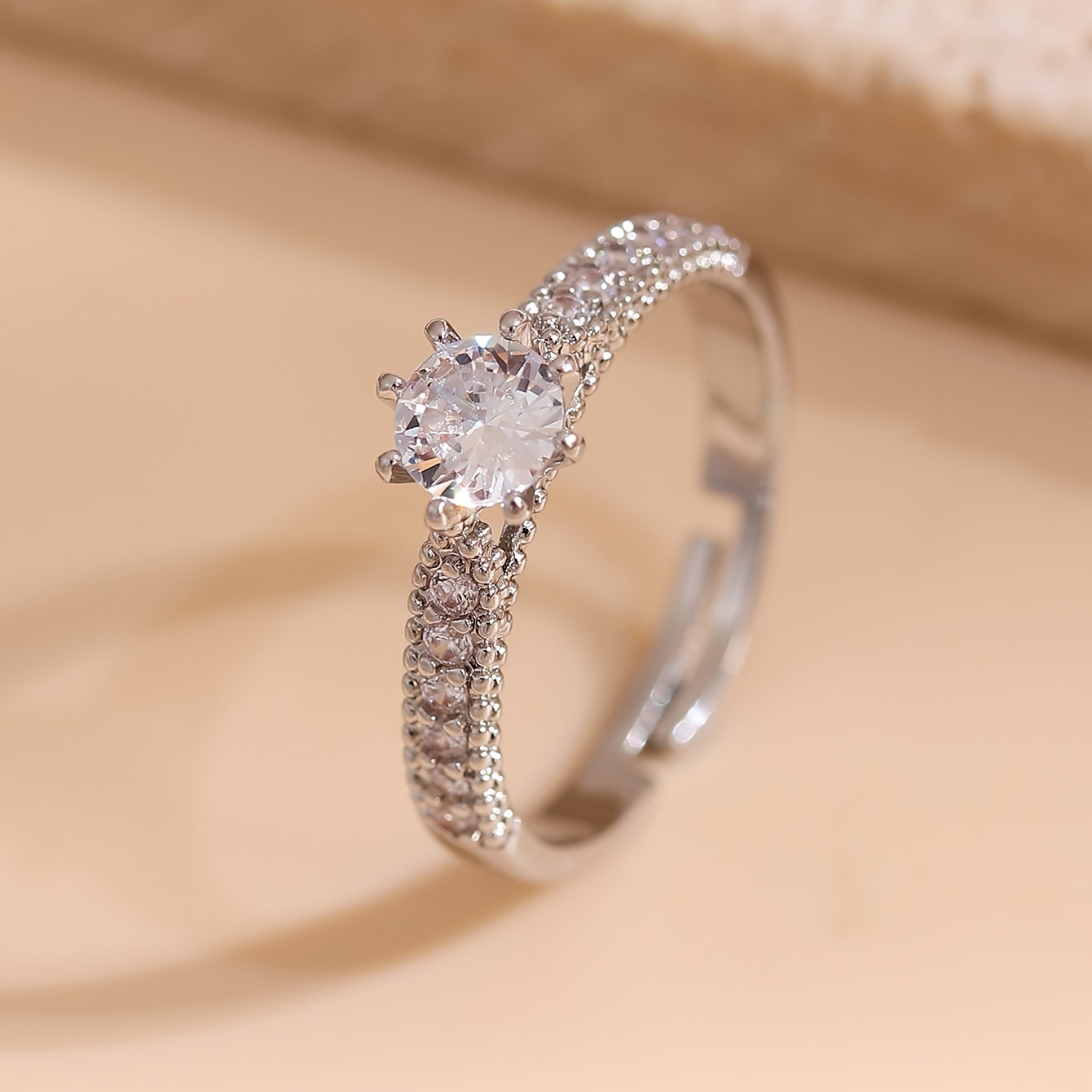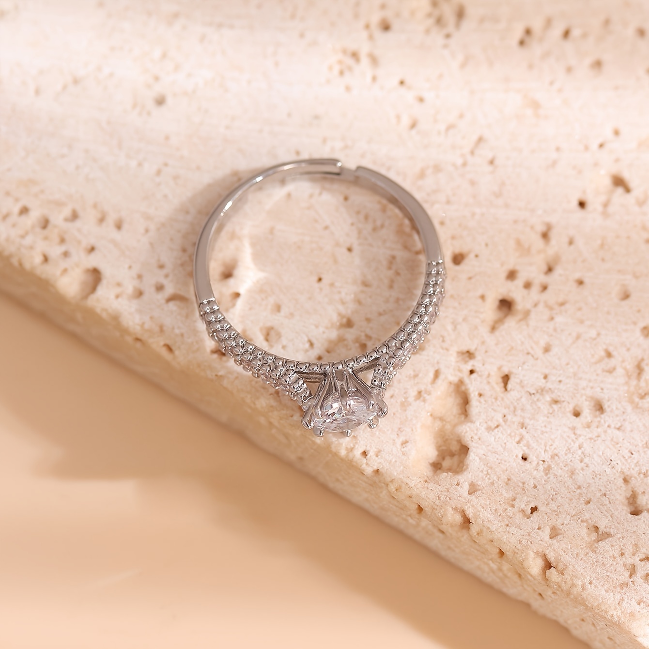 A Single Ring For Women With A Cool And Elegant Style, Light Luxury, High-end, Simple, And With A Touch Of Copper Inlay And Synthetic Zirconia.