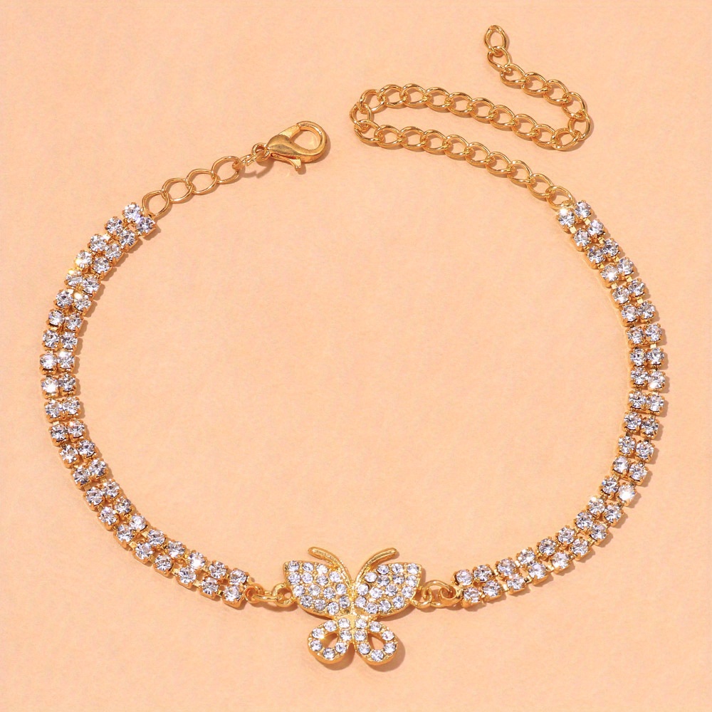Bling Bling Butterfly Cuban Chain Anklet Inlaid Shiny Rhinestone Hip Hop Style Ankle Bracelet For Women Men