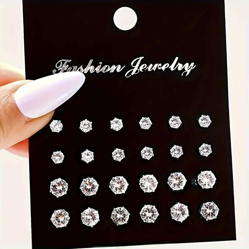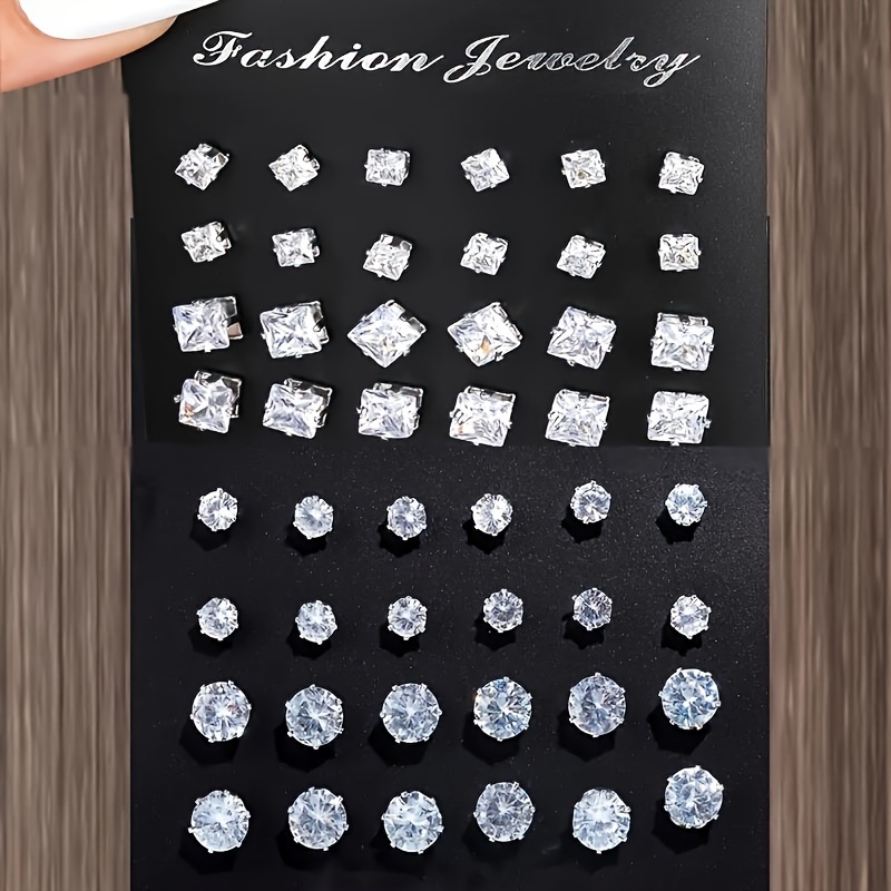 Elegant 48pcs Stud Earrings Set for Women - Sparkling Rhinestone Accents, Round & Square Shapes, Stainless Steel Posts, The rhinestone base is made of iron, Perfect for Casual Attire & Parties