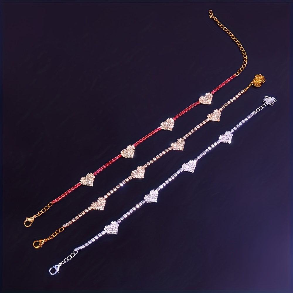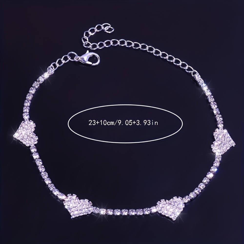 Elegant Rhinestone Heart Charm Anklet for Women, Copper with Specialty Plating, Versatile Foot Jewelry for Daily Wear - Single Pack