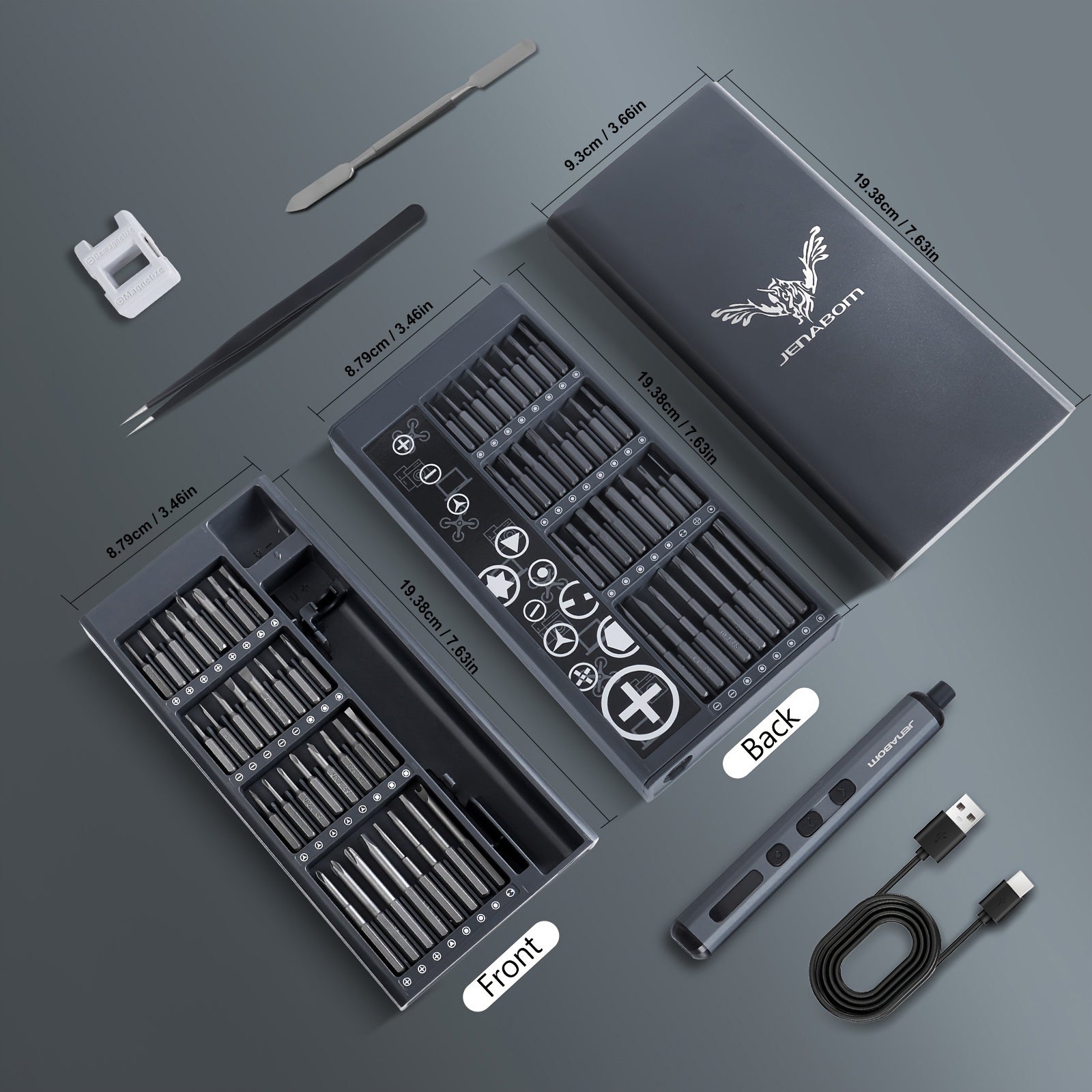 JENABOM 68 In 1 Precision Screwdriver Set Rechargeable Cordless Electric Screwdriver Set Magnetic Screwdriver Head Fast Charging with LED Light