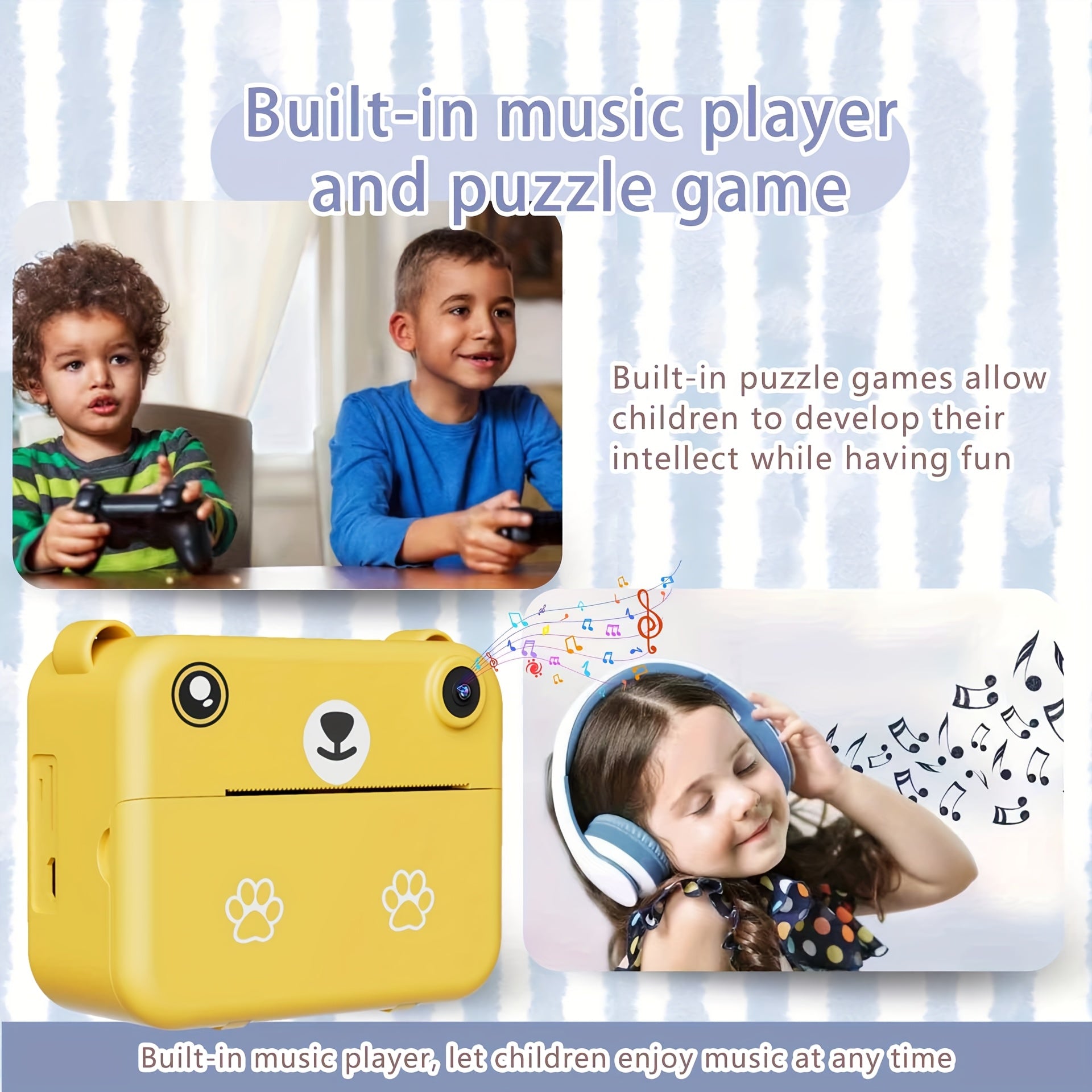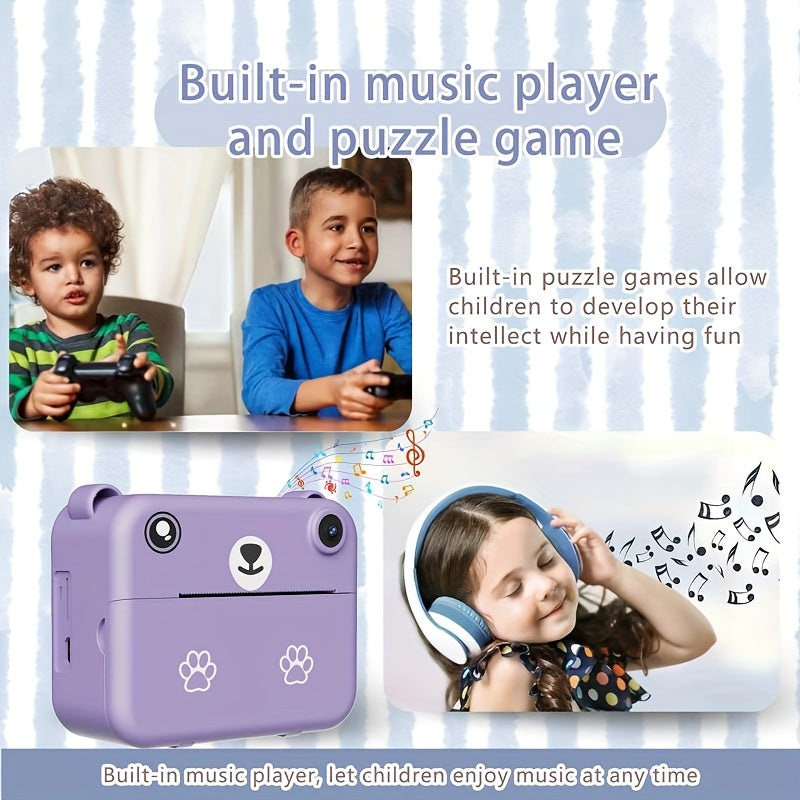Kids Camera, Instant Print Digital Camera - 1500mAh Rechargeable Battery, Flash, Music, Games, Delayed Printing (10s/5s/3s), USB Charging