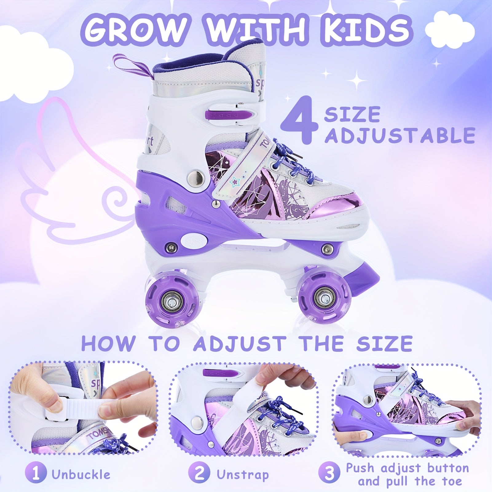 Lixada Adjustable Roller Skates, Non-Slip Wheels, Lightweight Design For Beginners & Training, Purple & White, Size M, EU 32-36