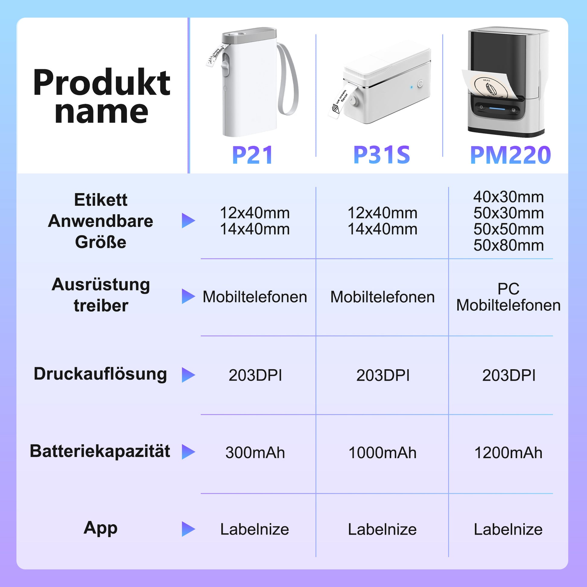 Mini Label Printer Self-Adhesive Labels, Portable Label Printer, P31S&P21&PM220 Combination of Different Designs, No Ink or Toner Required, Wireless Connectivity, For iOS and Android, For Home, Office and School, For Storage