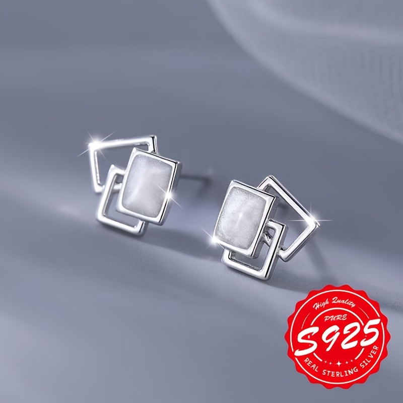 Pair of Spring/Summer S925 Sterling Silvery Geometric Square Earrings for Women, Elegant and Versatile for Casual Attire, Perfect Gift Idea, Hypoallergenic