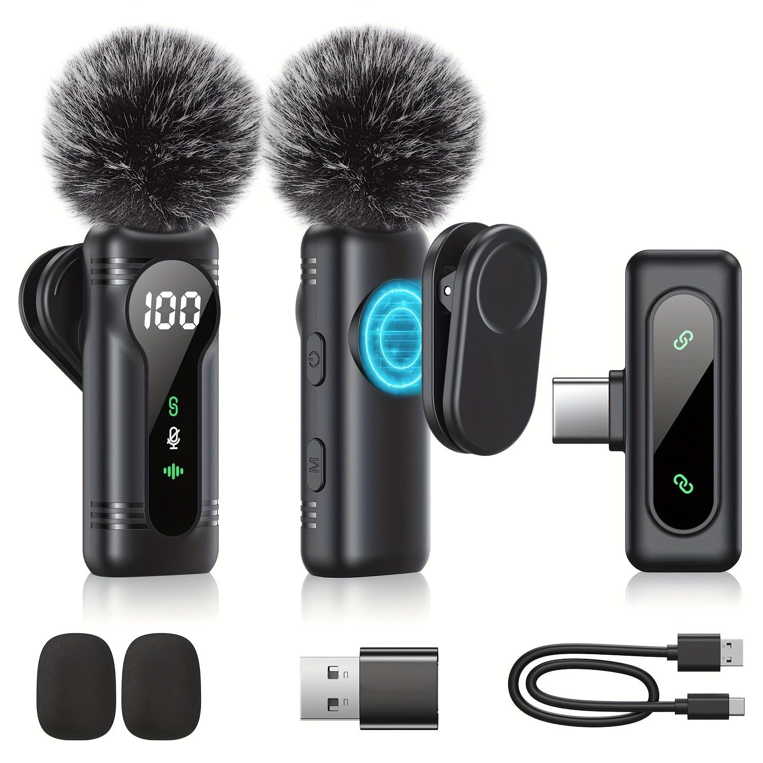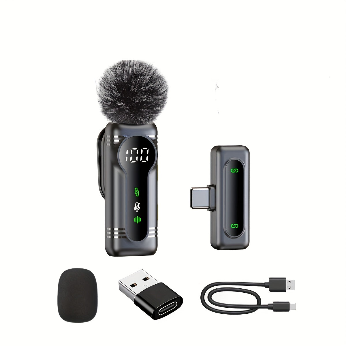 Each compact wireless mic offers a maximum of 7 hours of uninterrupted operation. When utilizing both microphones simultaneously, the overall recording duration extends to 14 hours, making it ideal for all-day filming, podcasting, and virtual meetings. It features rapid charging with the provided USB-C cable, ensuring minimal idle time. Designed for type C microphones, wireless lavalier mics, and phone microphone configurations.