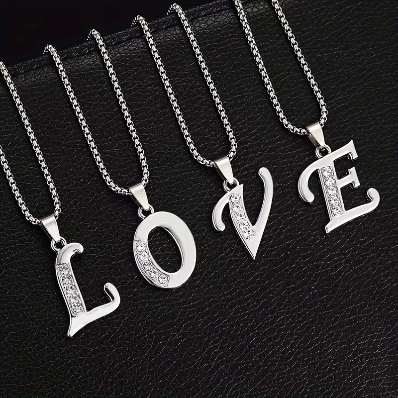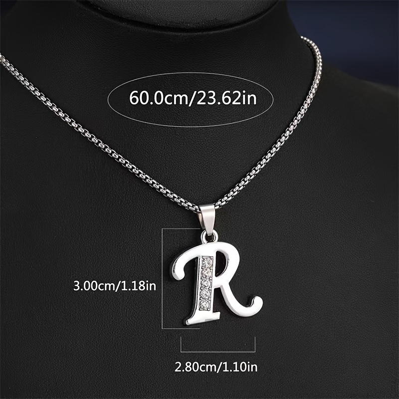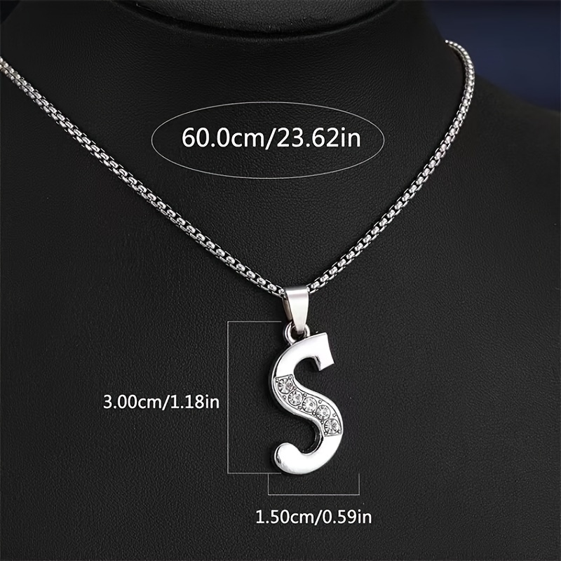 Stainless Steel Hip Hop Initial Necklace, Glass Embedded Alphabet Pendant, Daily Occasion Jewelry, Ideal Graduation Gift, All-Season Accessory, Perfect for Halloween, Daily Wear Jewelry|Hip Hop Style|Glass Embedded Lette