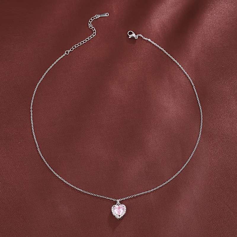 Sweet And Cool Heart Design Necklace with Heart-Shaped Synthetic Zirconia, Perfect for a Lovely Girl.