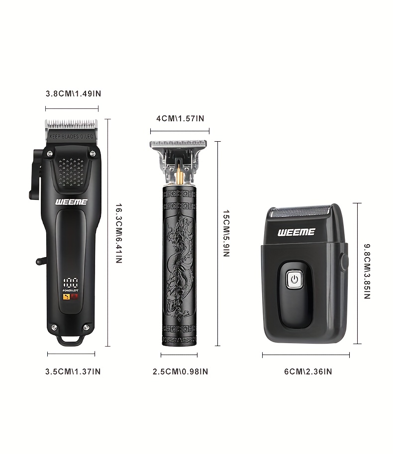 WEEME 3pcs Premium Men's Grooming Set Professional Hair Clipper Kit with Cordless Shaver Beard Trimmer LCD Display & USB Fast Charge Ideal Gift for Father's Day/Birthday/Anniversary (for Dad/Husband/Groom)